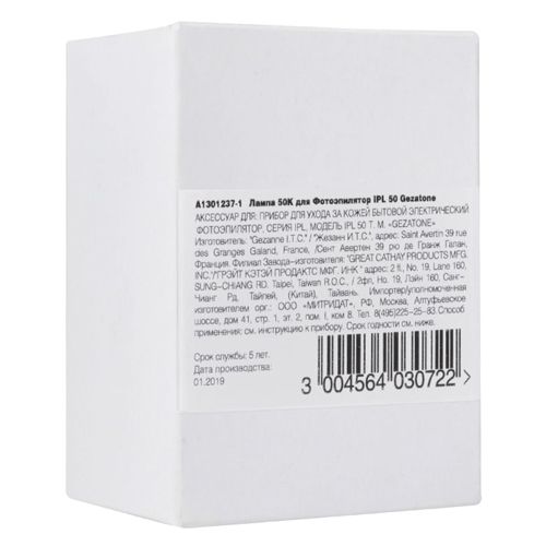 Запасной картридж -лампа для фотоэпилятора Gezatone IPL 50 c ресурсом 50000 вспышек.