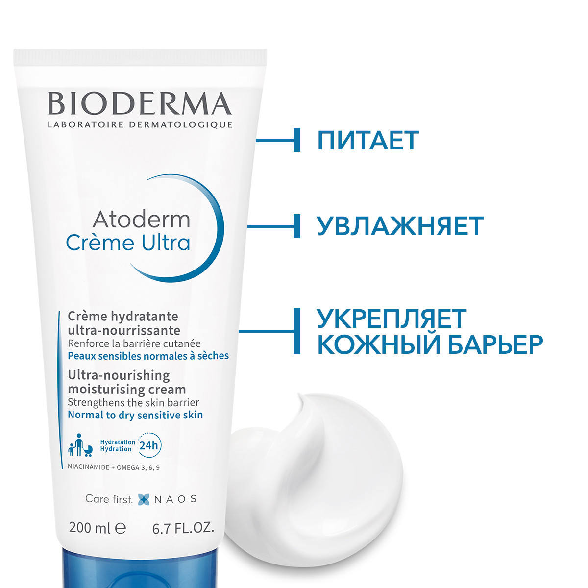 Питательный крем Bioderma Atoderm Ultra помогает восстановить защитный кожный барьер, который может страдать от многочисленных факторов, например, медикаментозного лечения, погодных условий, аллергических реакций и некоторых косметических ингредиентов. Увлажняющие, питательные и защитные компоненты в составе крема смягчают кожу и глубоко увлажняют, запирая влагу в коже. Эффект длится 24 часа.