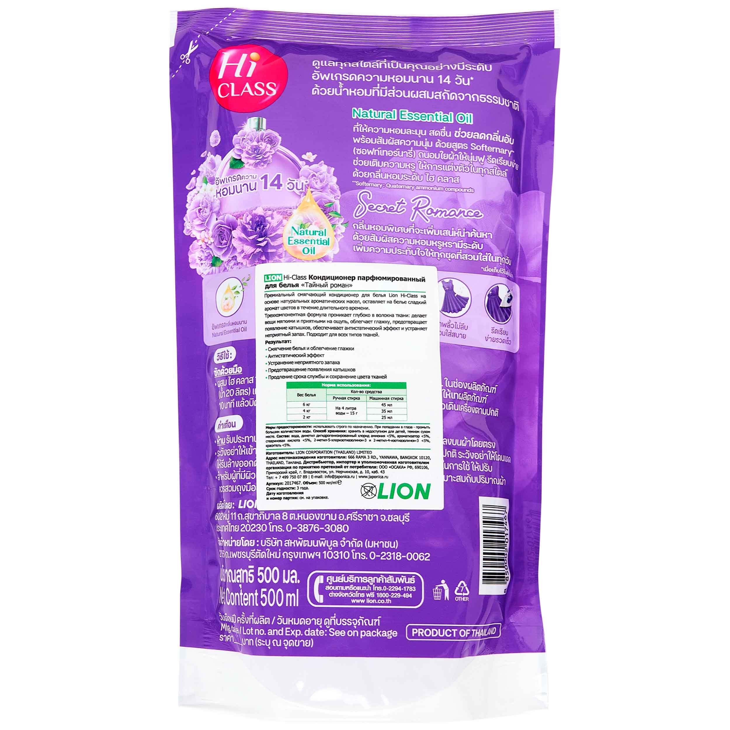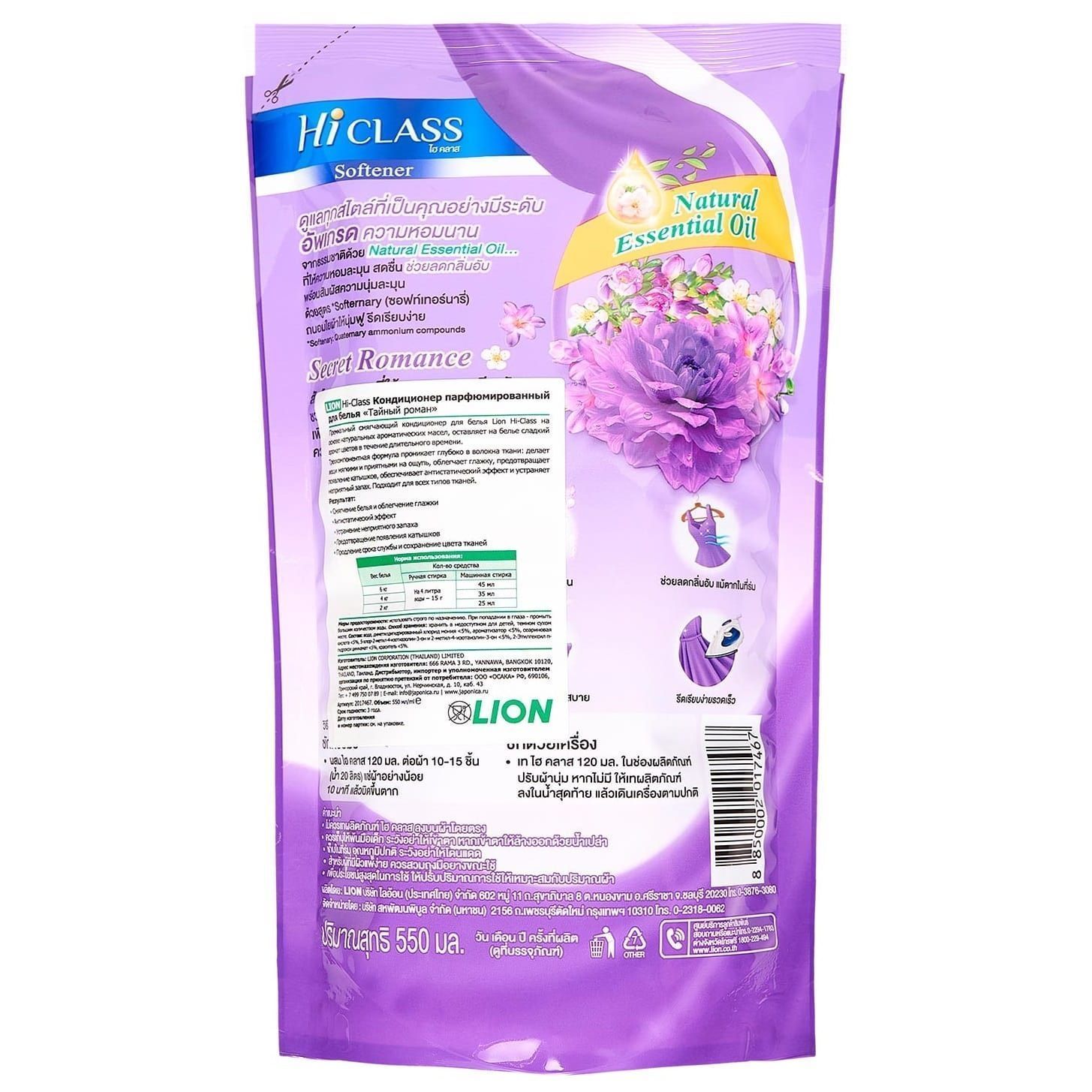 Премиальный смягчающий кондиционер для белья Lion Hi-Class на основе натуральных ароматических масел, оставляет на белье парфюмированный аромат романтических цветов в течение длительного времени.