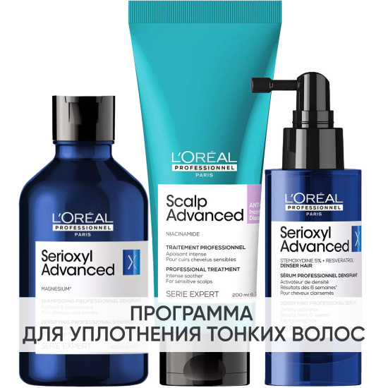 Программа Serioxyl Advanced комплексный уход: шампунь 300 мл + гель-уход 200 мл + сыворотка 90 мл