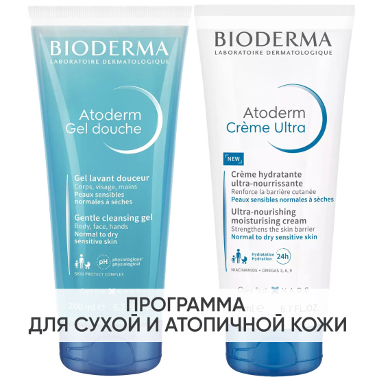 Программа Atoderm очищение и основной уход: гель для душа 200 мл + крем 200 мл