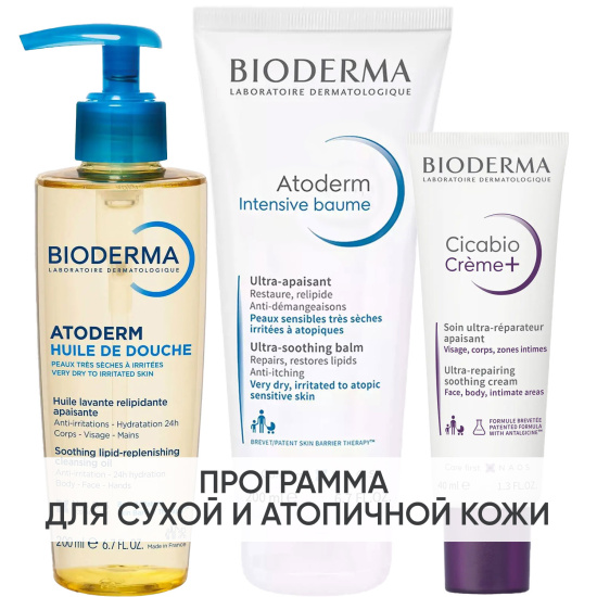 Программа Atoderm комплексный уход: масло для душа 200 мл + бальзам Intensive 200 мл + крем Cicabio 40 мл
