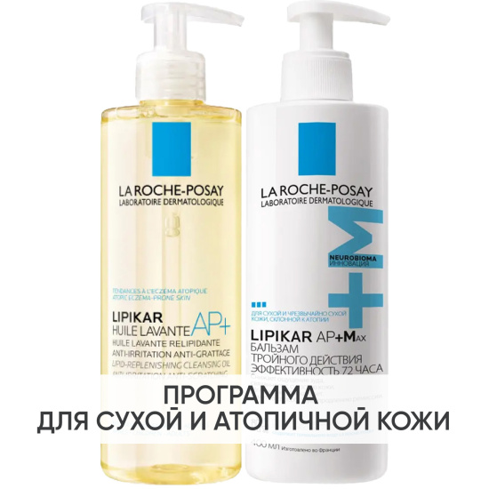 Программа Lipikar очищение и основной уход: масло для ванны и душа 400 мл + бальзам 400 мл