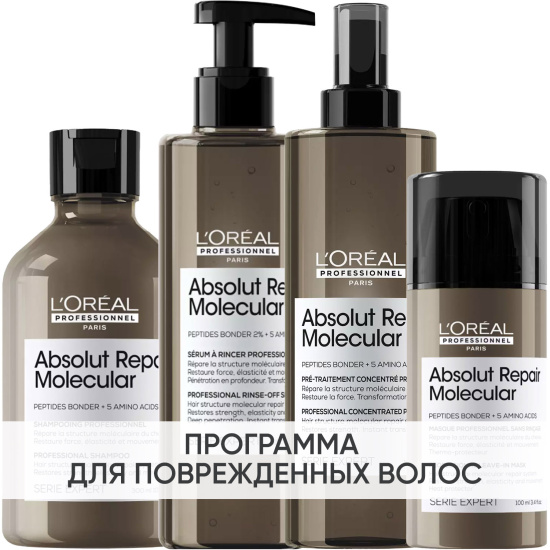 Программа Absolut Repair Molecular комплексный уход: шампунь 300 мл + сыворотка 250 мл + пре-шампунь 190 мл + несмываемая маска 100 мл