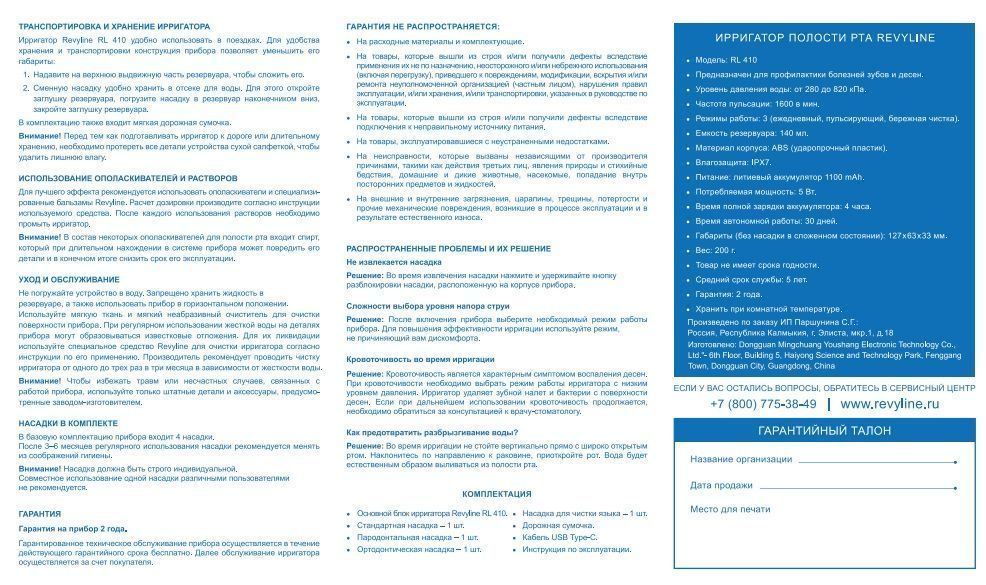 • насадки: стандартная насадка – 1 шт, пародонтологическая – 1 шт, ортодонтическая – 1 шт, насадка для чистки языка