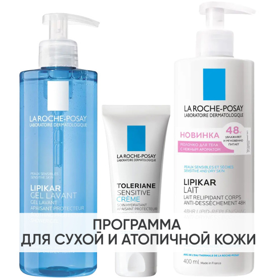 Программа Lipikar комплексный уход: гель для душа 400 мл + крем для лица 40 мл + молочко для тела 400 мл