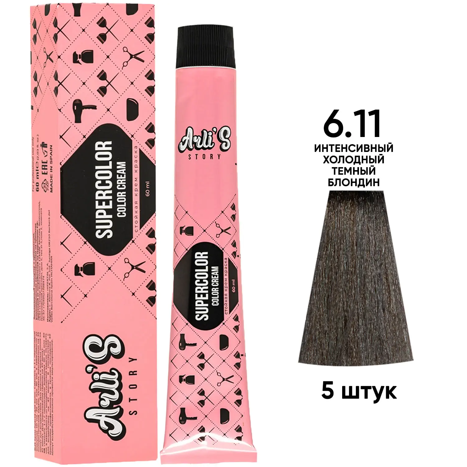 Профессиональная краска для волос оттенок 6.11, 5 шт х 60 мл