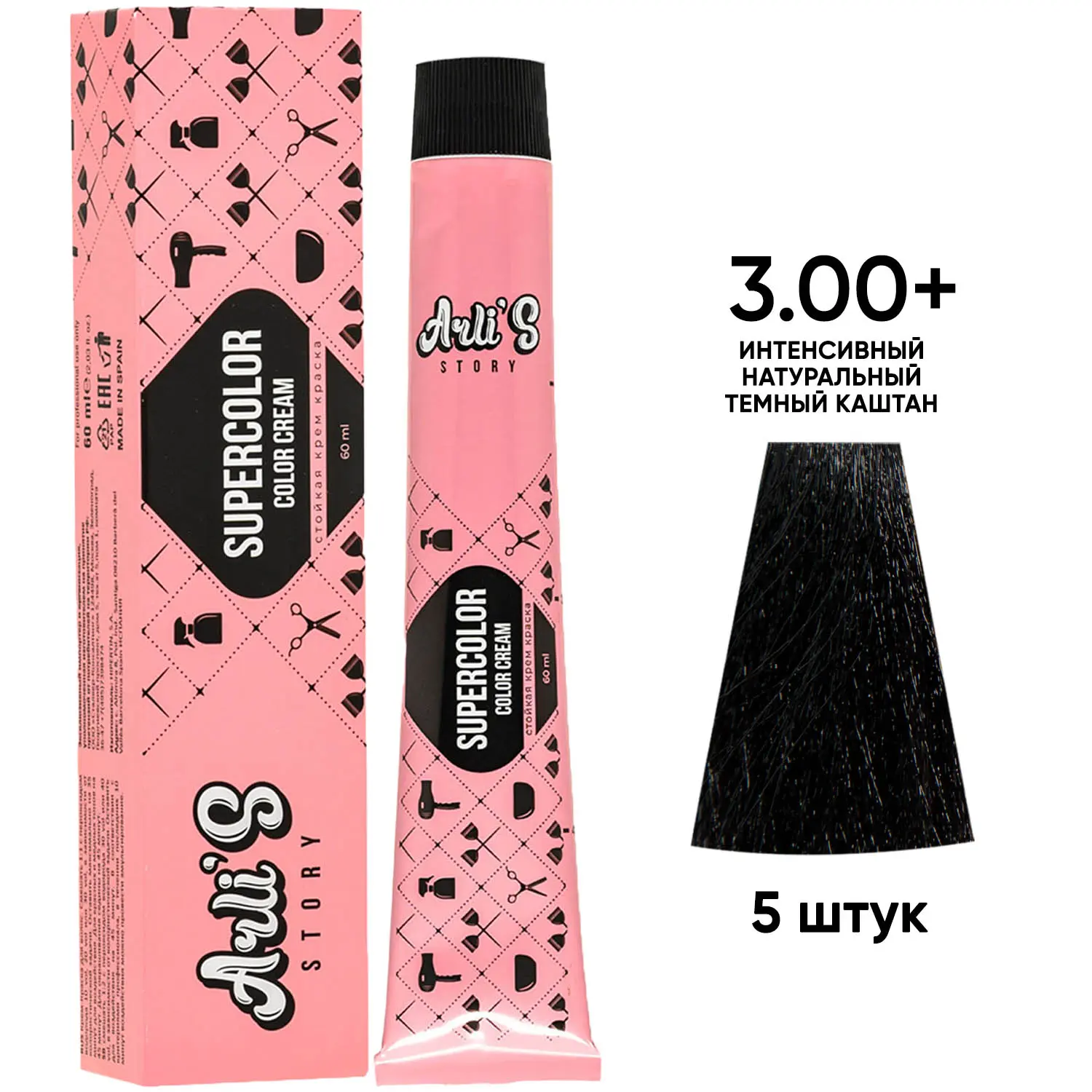 Профессиональная краска для волос оттенок 3.00+, 5 шт х 60 мл