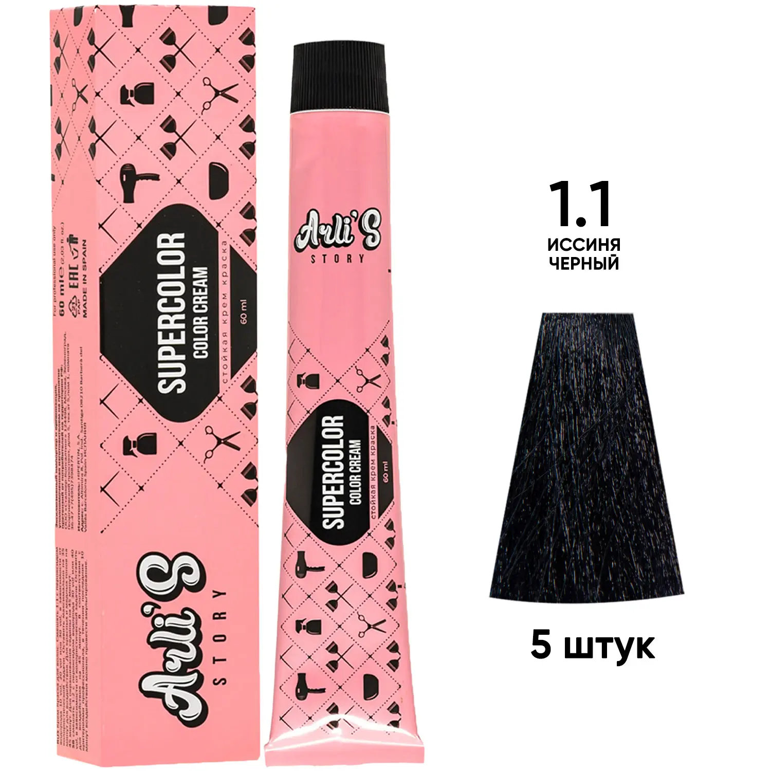 Профессиональная краска для волос оттенок 1.1, 5 шт х 60 мл