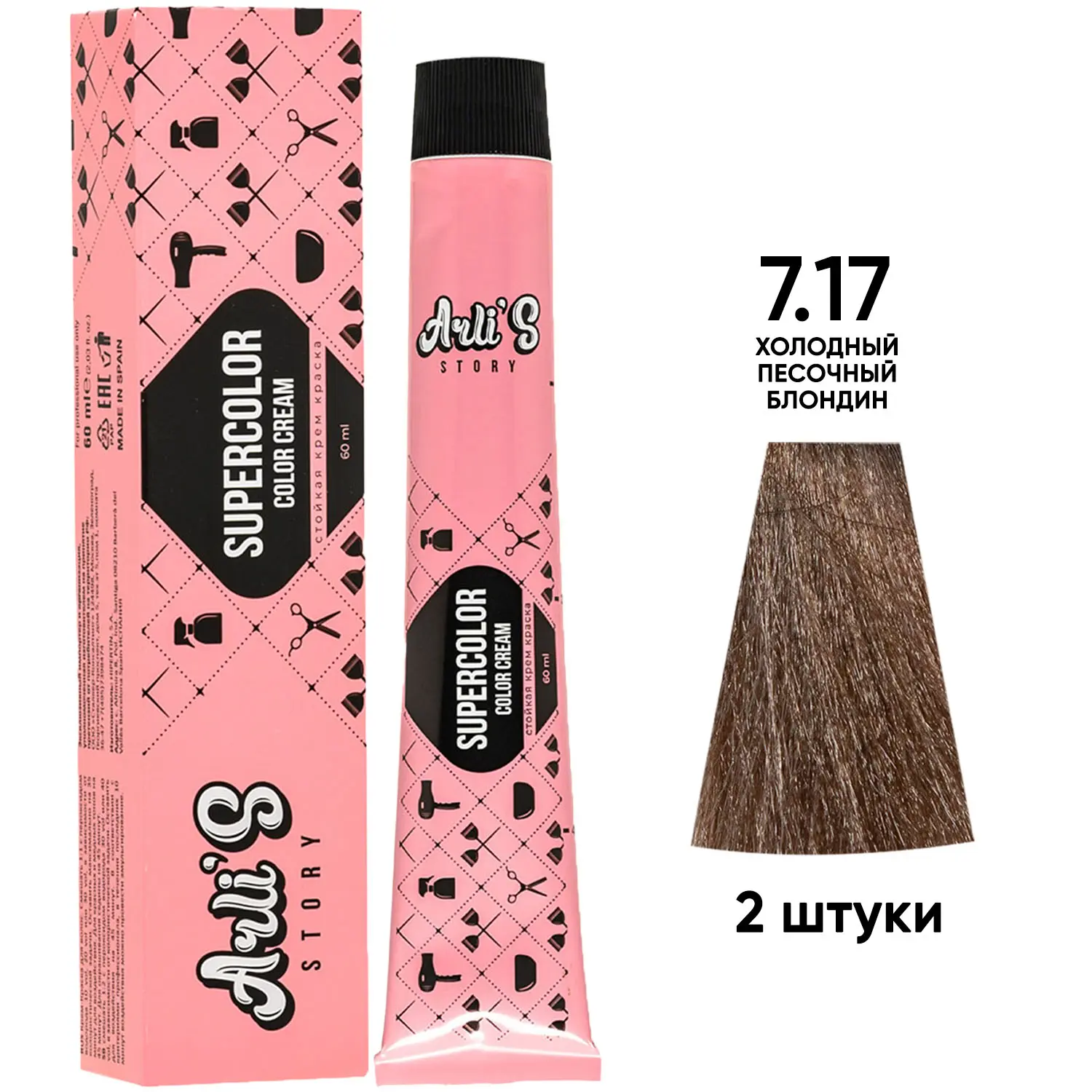 Профессиональная краска для волос оттенок 7.17, 2 шт х 60 мл