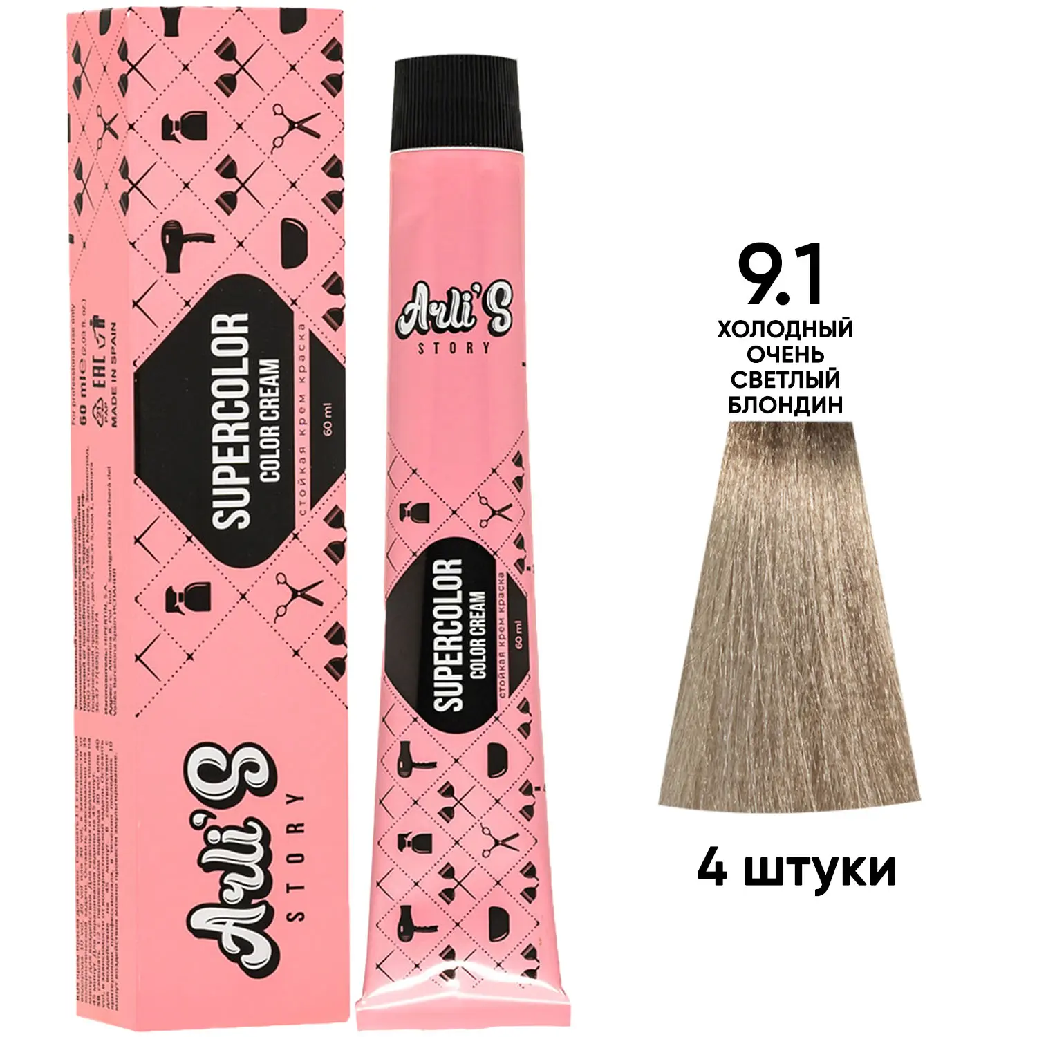 Профессиональная краска для волос оттенок 9.1, 4 шт х 60 мл