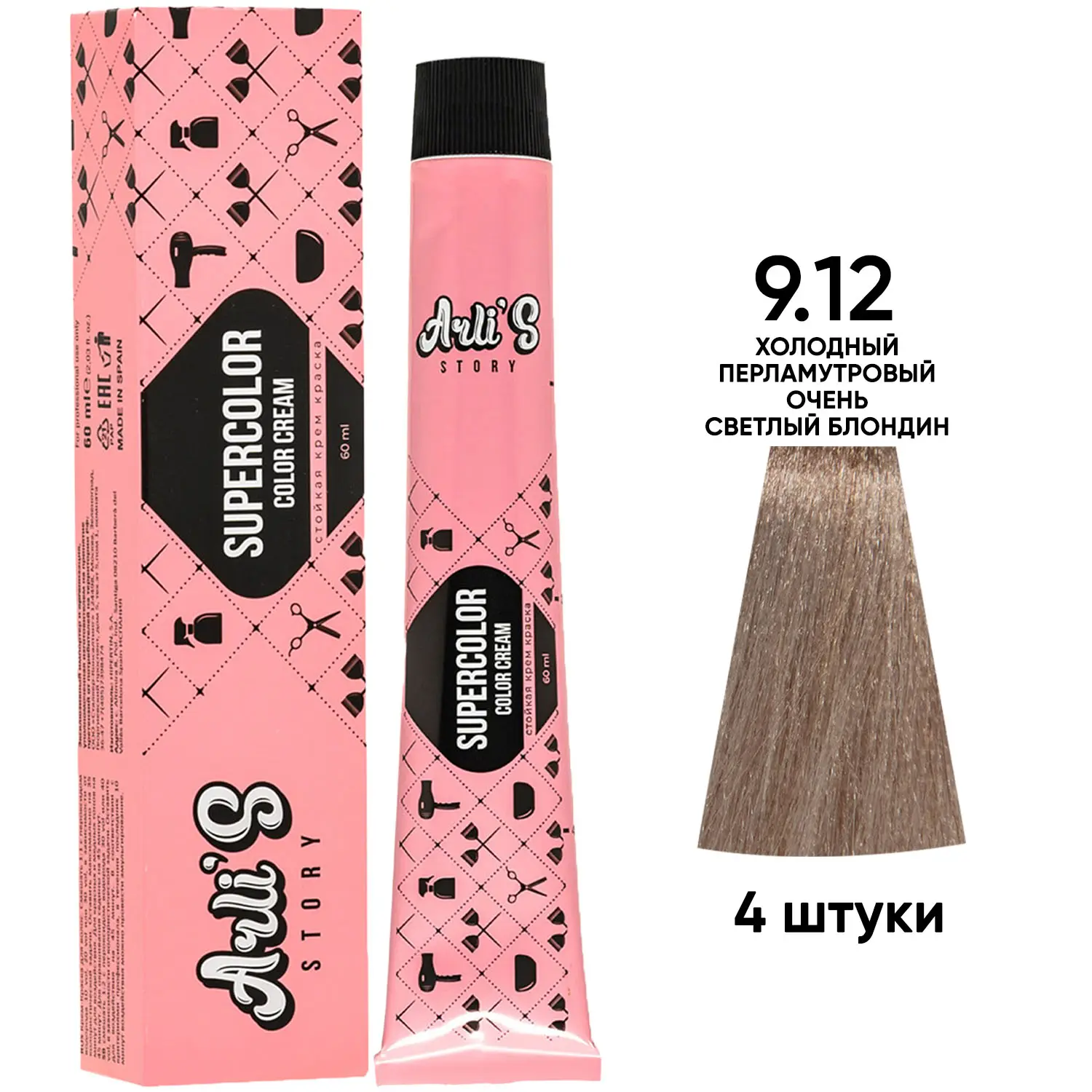 Профессиональная краска для волос оттенок 9.12, 4 шт х 60 мл
