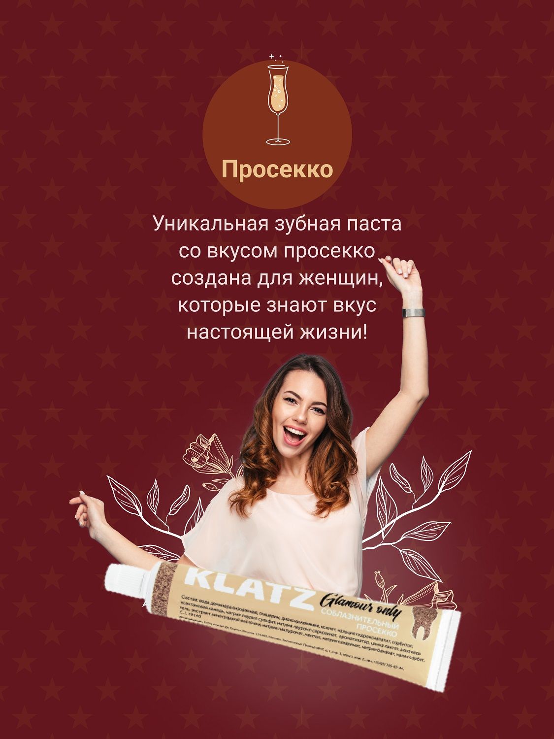 Активная зубная паста комплексного действия "Соблазнительный просекко" с изысканным вкусом охлажденного шампанского придаст гигиенической процедуре ухода за полостью рта аристократическое наслаждение и приятное послевкусие. Зубная паста создана специально для утонченных дам!