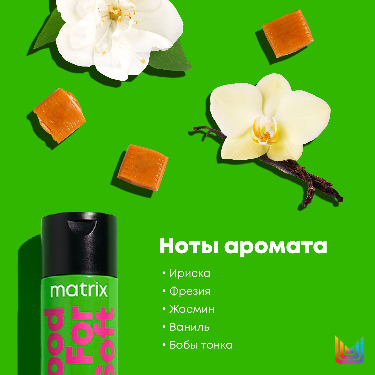 Аромат раскрывается сладкими нотами ириски, жасмина, фрезии и ванили.
