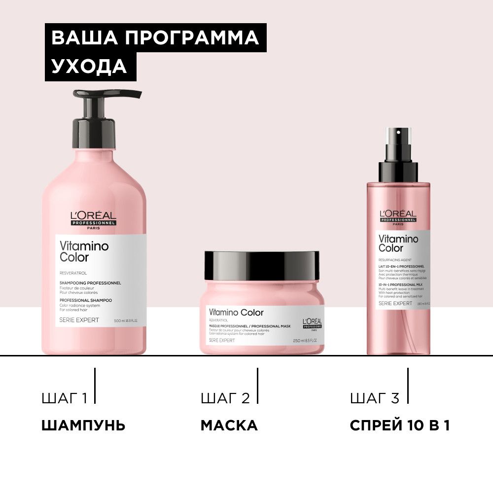 В случае попадания в глаза немедленно промойте их водой. Используйте в комбинации со смываемым уходом Vitamino Color.