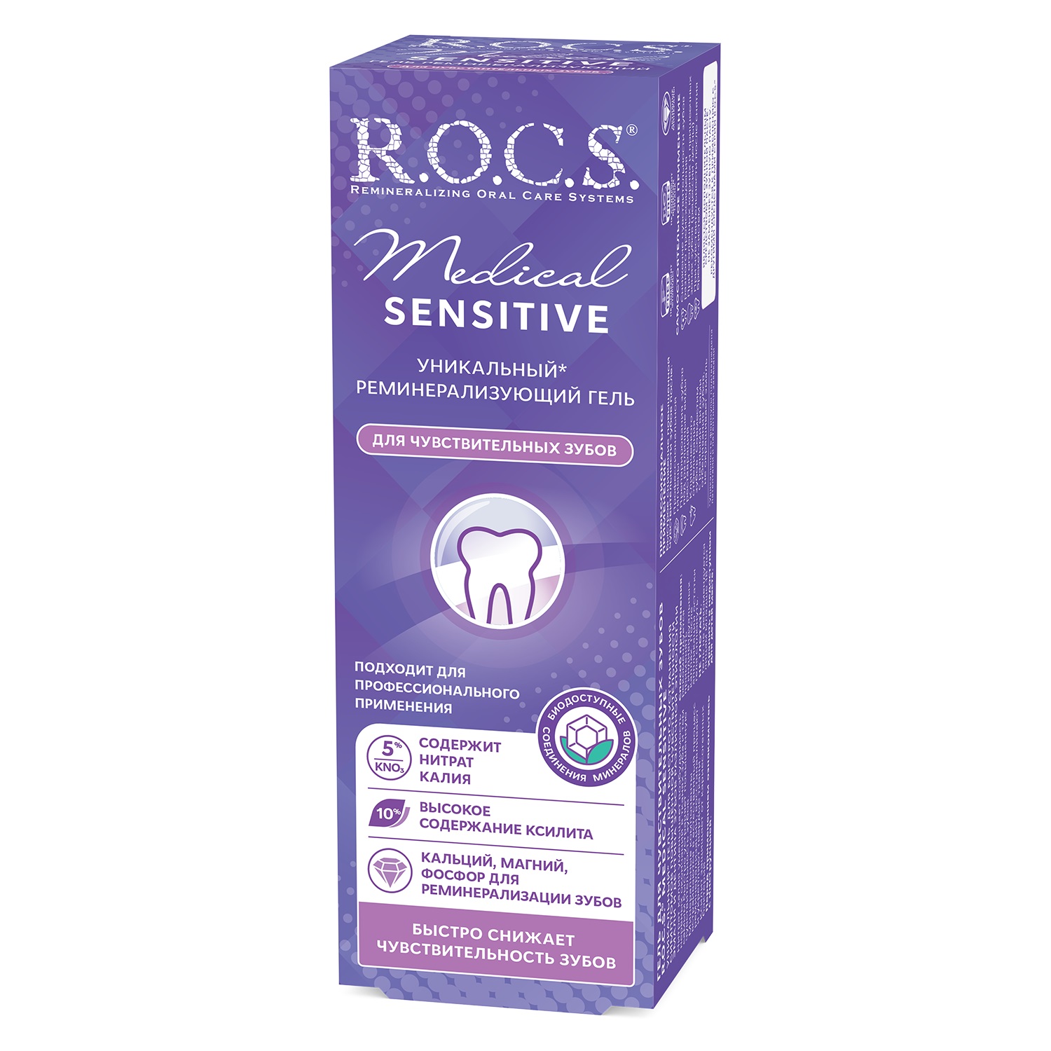 Калия нитрат - один из наиболее эффективных десенситайзеров. Кальций, фосфор и магний - источники структурных элементов эмали зуба, укрепляющих эмаль. Ксилит повышает реминерализующий потенциал комплекса, а так же подавляет активность бактерий, вызывающих кариес и болезни десен. Не содержит фтор.