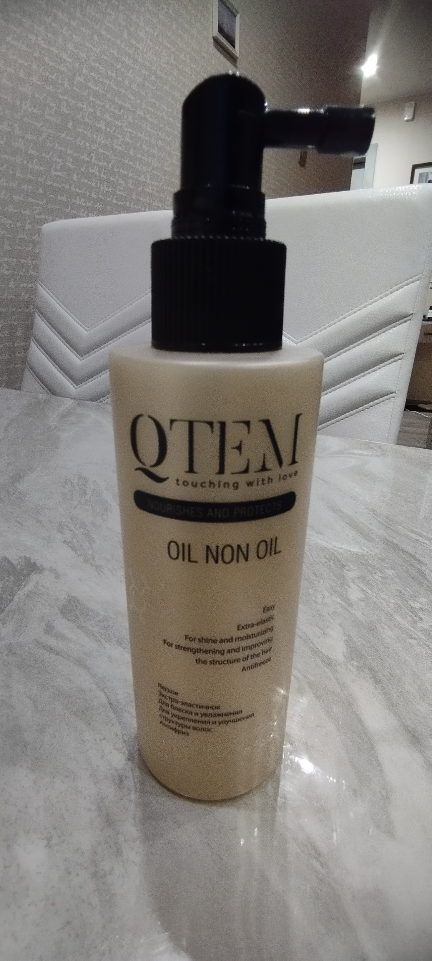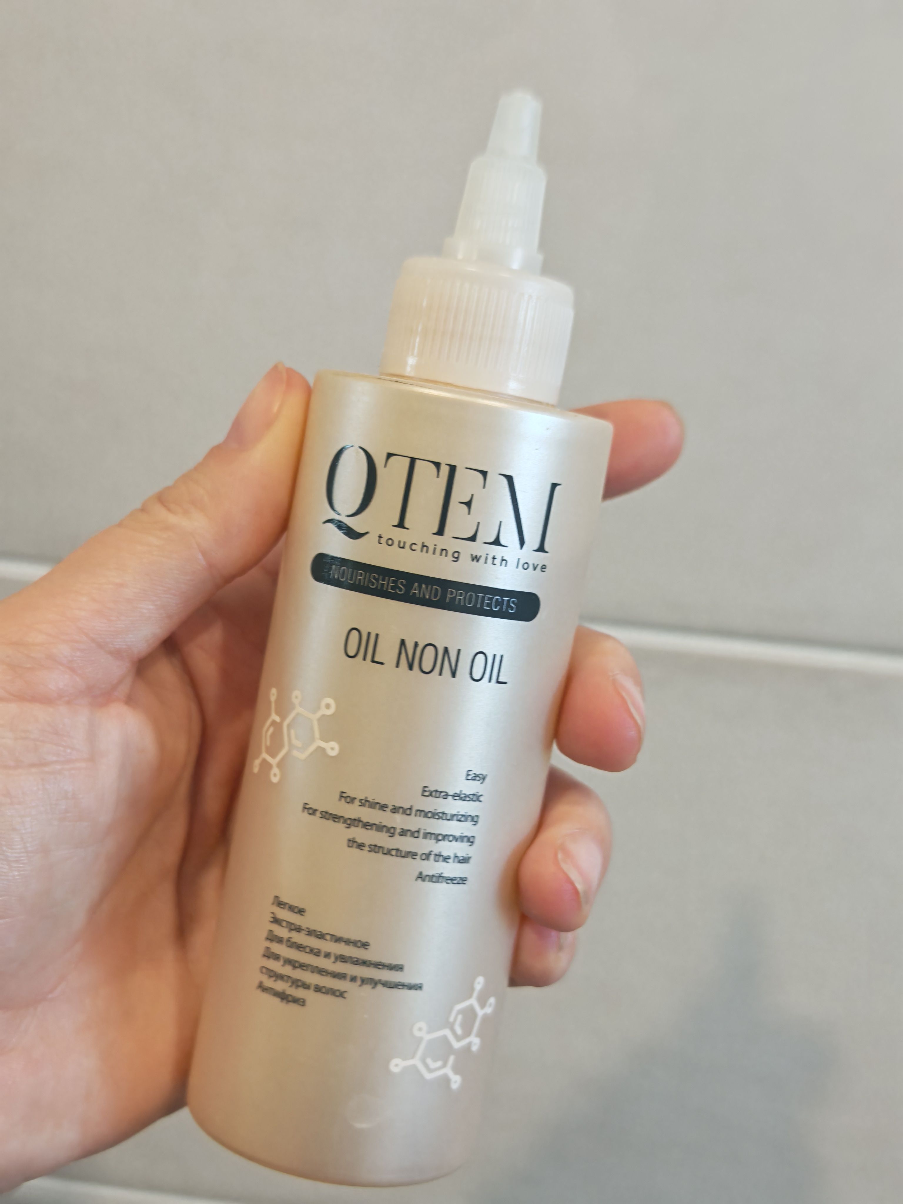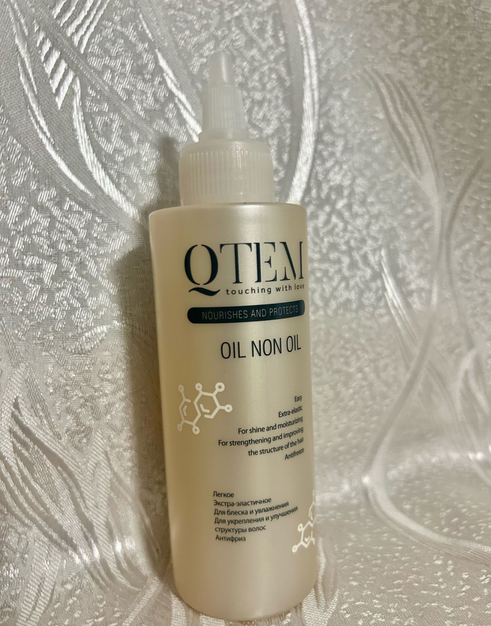 На флаконе написано - масло без масла, боялась, что волос будет жирным. Но в составе нет масла-глицерин и молочная кислота прекрасно увлажняют сухие волосы.Волосы послушные, мягкие , рассыпчатые. Очень понравилось средство, рекомендую тем, кому не хватает увлажнения волосам