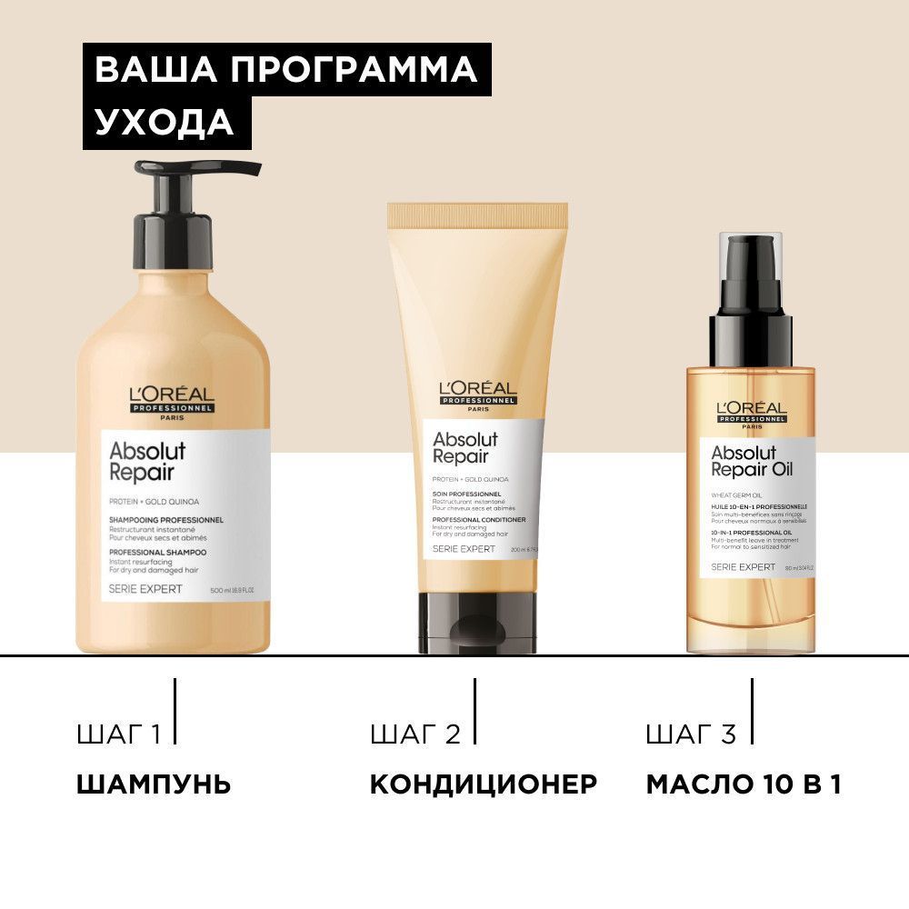 Шампунь Absolut Repair - абсолютный бестселлер в уходе за поврежденными волосами. Экстракт зерен золотого киноа и пшеничный протеин в составе шампуня обеспечивают интенсивное восстановление без эффекта утяжеления волос. Волосы мгновенно преображаются, становясь более сильными, мягкими и сияющими.
