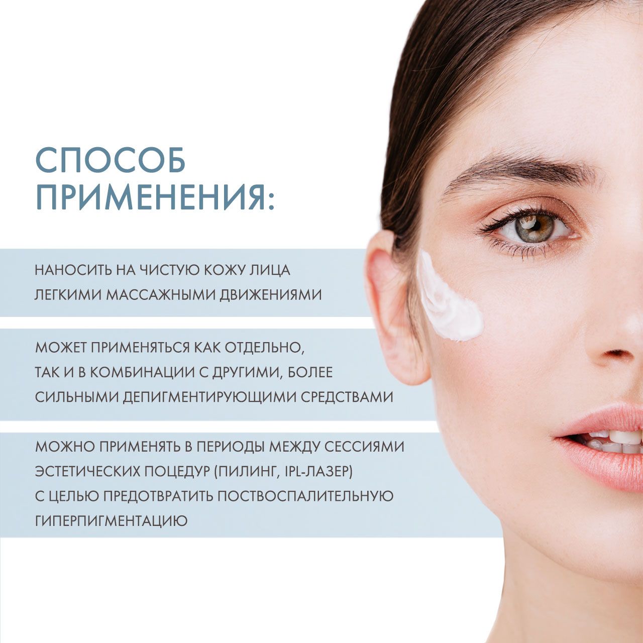 Можно применять в периоды между сессиями эстетических поцедур (пилинг, IPL-лазер) с целью предотвратить поствоспалительную гиперпигментацию.