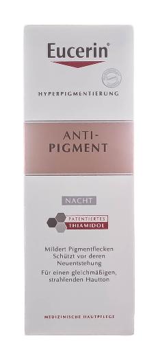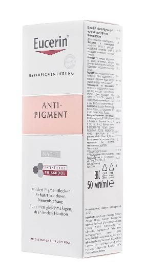 Eucerin Anti-Pigment Ночной антипигментный крем содержит тиамидол, эффективный запатентованный ингредиент, который действует на причину гиперпигментации, уменьшая выработку меланина. Клинически и дерматологически доказано, что тиамидол уменьшает темные пятна и предотвращает их повторное появление. Первый результат заметен уже через две недели, а при постоянном использовании можно добиться стойкого эффекта.