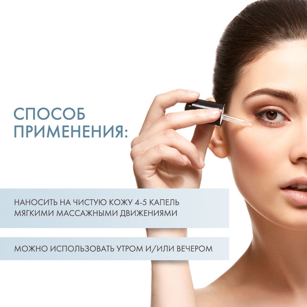 На чистую кожу нанести 4-5 капель сыворотки и втереть мягкими массажными движениями. Наносить перед ежедневным уходовым средством. Можно использовать утром и/или вечером.