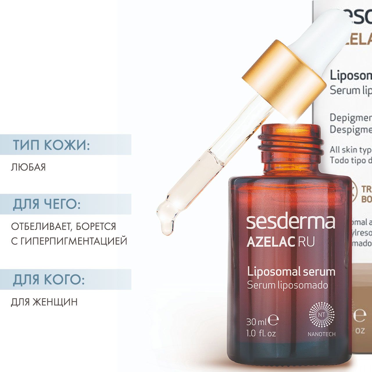 Липосомальная сыворотка на основе липосомированных компонентов, ретинола, стабилизированного витамина С, глициретиновой кислоты обладает отбеливающим, противовоспалительным и антиоксидантным действием, воздействуя даже на высокие фототипы, уменьшает поствоспалительную гиперпигментацию и мелазму.