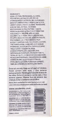 Состав: aqua, lecithin, propanediol, alcohol, bellis perennis flower extract, polymethyl methacrylate, peg-40 hydrogenated castor oil, propylene glycol, pentaerythrityl tetra-di-t-butyl hydroxyhydrocinnamate, 4-butylresorcinol, alcohol denat, ascorbyl glucoside, azelaic acid, bha, bht, caprylic/capric triglyceride, carbomer, citronellyl methylcrotonate, citrus grandis fruit extract, diacetyl boldine, dipotassium, phosphate, disodium edta, disodium phosphate, ethylhexylglycerin, glycerin, glycyrrhetinic acid, hydrochloric acid, hydroxypropyl, cyclodextrin, melissa officinalis leaf extract, morus alba root extract, niacin, nicotiana benthamiana sh-polypeptide-7, parfum, peg/ppg-20/6 dimethicone, phenethyl alcohol, phenoxyethanol, polysorbate 20, potassium phosphate, potassium sorbate, retinal, retinol sodium chloride, sodium cholate, sodium hydroxide, tocopheryl acetate, tranexamic acid, triethanolamine, triisopropanolamine, undecylenoyl phenylalanine, xanthan gum