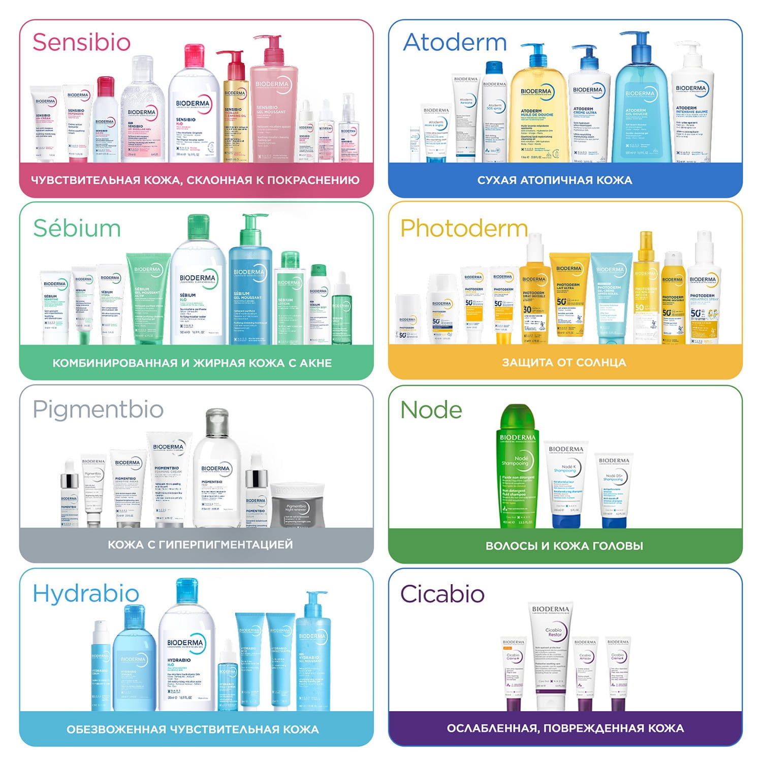 Линия средств Bioderma Atoderm разработана для ухода за атопичной, сухой, очень сухой и чувствительной кожей лица и тела. При атопическом дерматите кожа требует особого бережного ухода для устранения зуда, защиты, увлажнения и заживления кожи. Продукты Atoderm обладают высокой переносимостью, гипоаллергенны, подходят взрослым, детям и младенцам.
