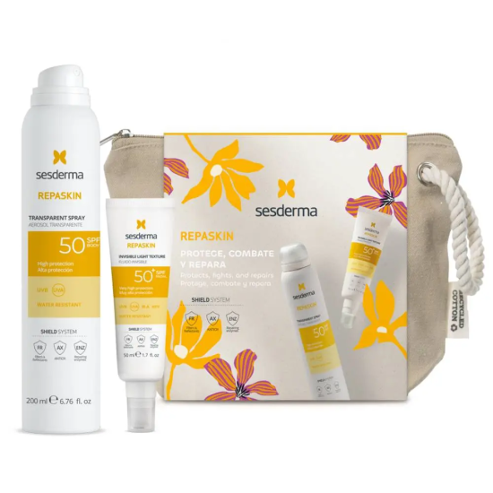 Набор солнцезащитный средств в косметичке: спрей для тела SPF50 200 мл + средство для лица SPF50 50 мл