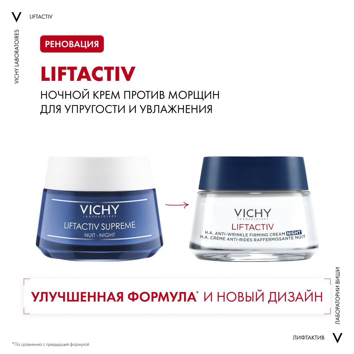 Ночной крем против морщин Vichy Supreme придает коже упругость и гладкость. Утром лицо выглядит заметно подтянутым и сияющим.