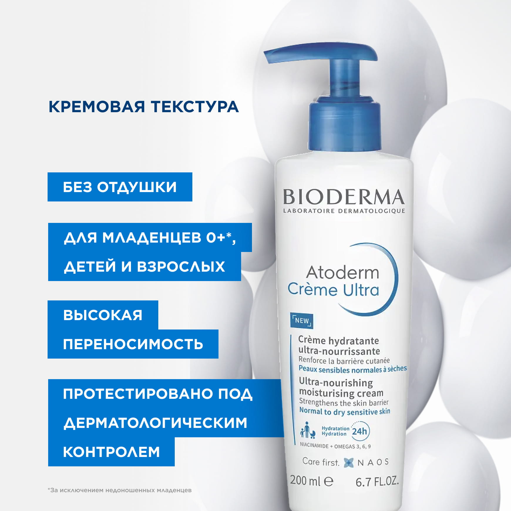 Питательный крем Bioderma Atoderm Ultra помогает восстановить защитный кожный барьер, который может страдать от многочисленных факторов, например, медикаментозного лечения, погодных условий, аллергических реакций и некоторых косметических ингредиентов. Увлажняющие, питательные и защитные компоненты в составе крема смягчают кожу и глубоко увлажняют, запирая влагу в коже. Эффект длится 24 часа.