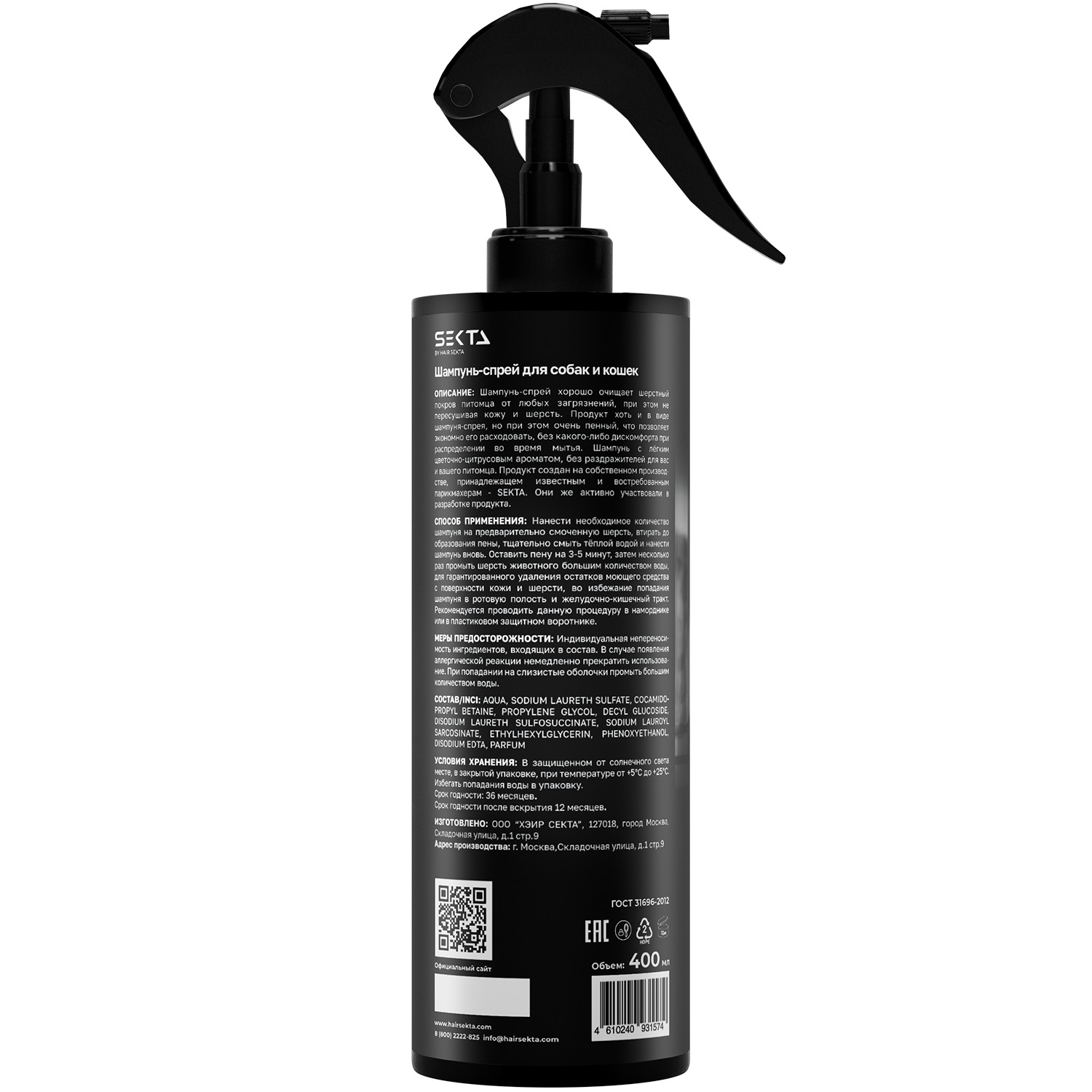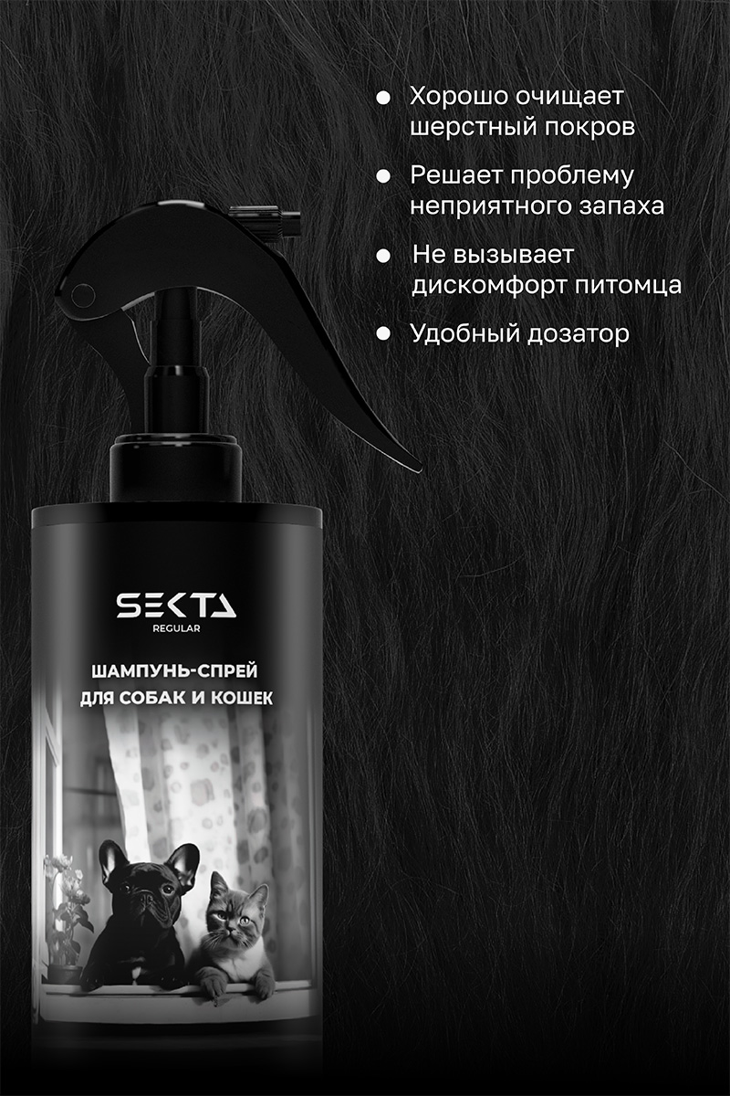 Шампунь-спрей эффективно удаляет любые загрязнения с шерсти вашего питомца, не вызывая сухости кожи. Несмотря на форму спрея, продукт обладает высокой пенообразующей способностью, что позволяет использовать его экономно и без дискомфорта при нанесении.