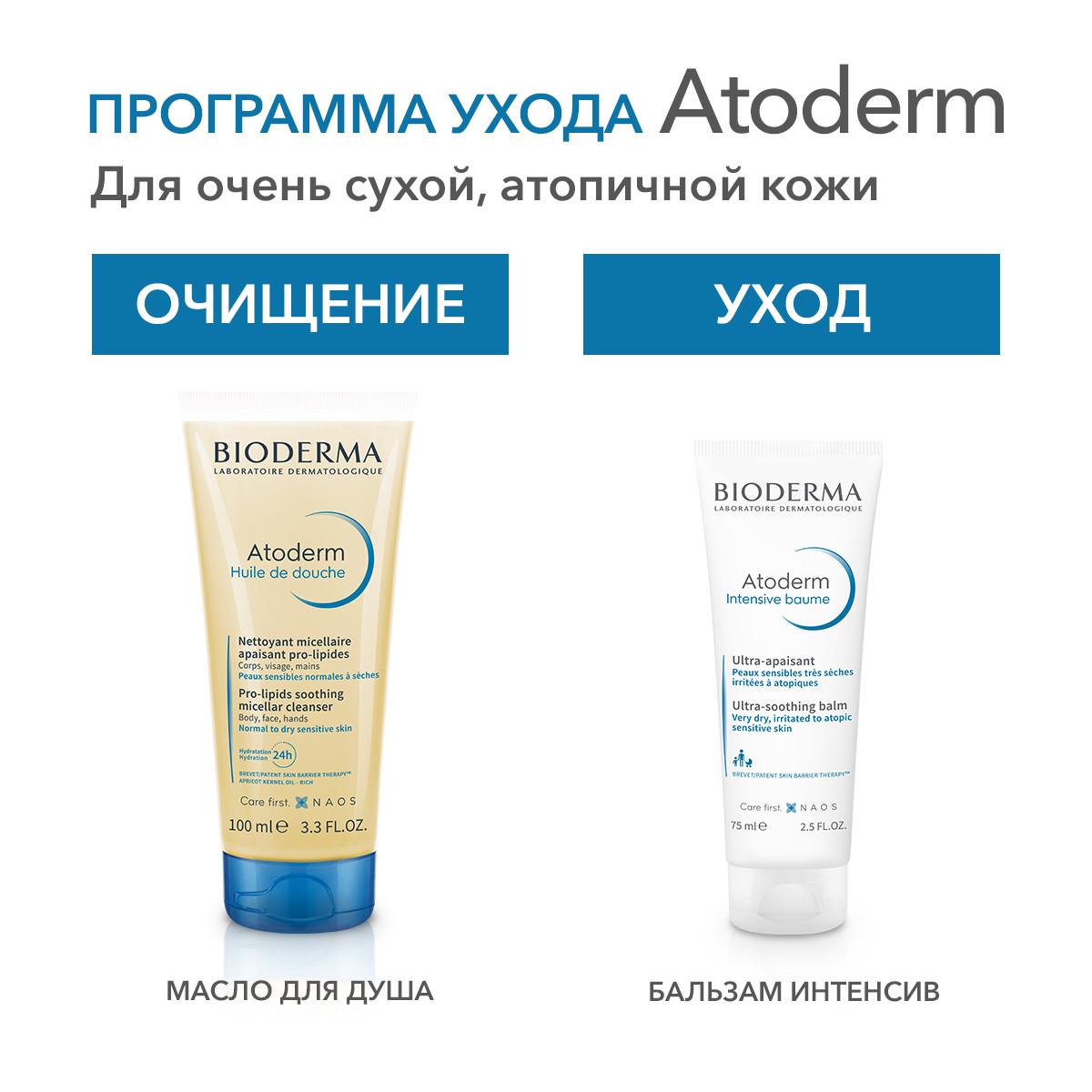 Линия средств Bioderma Atoderm разработана для ухода за атопичной, сухой, очень сухой и чувствительной кожей лица и тела. При атопическом дерматите кожа требует особого бережного ухода для устранения зуда, защиты, увлажнения и заживления кожи. Продукты Atoderm обладают высокой переносимостью, гипоаллергенны, подходят взрослым, детям и младенцам.