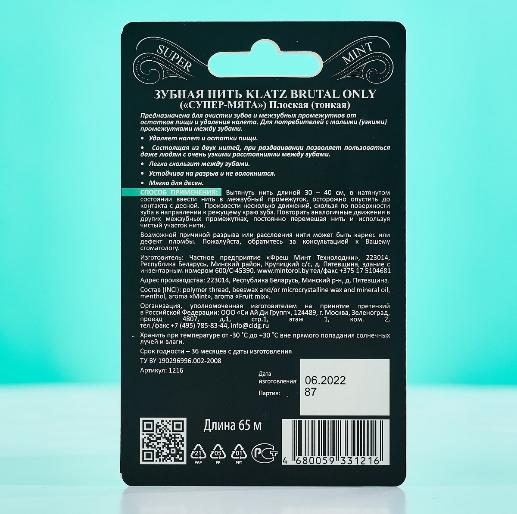 Состав (INCI): polymer thread, beeswax and/or microcrystallinewax and mineral oil, menthol, aroma "mint", aroma "fruit mix"